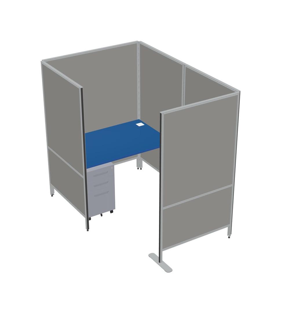 Prism Blue Small Private Panel System + Metal Mobile Drawers