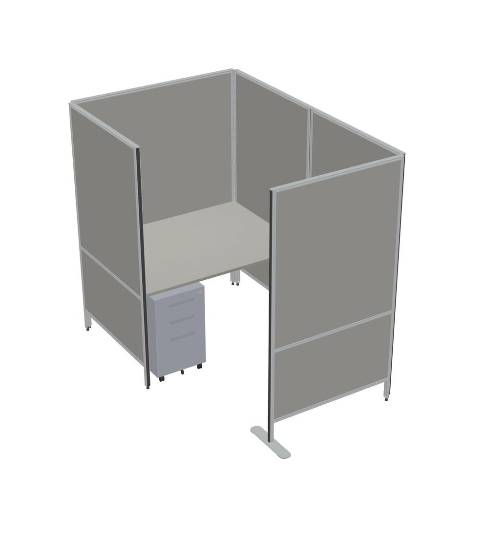 Grey Shadows Small Private Panel System + Metal Mobile Drawers