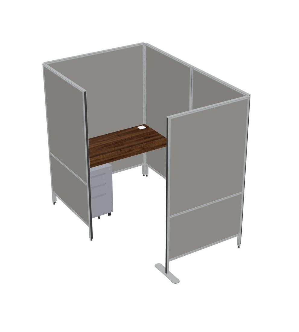 Columbia Walnut Small Private Panel System + Metal Mobile Drawers