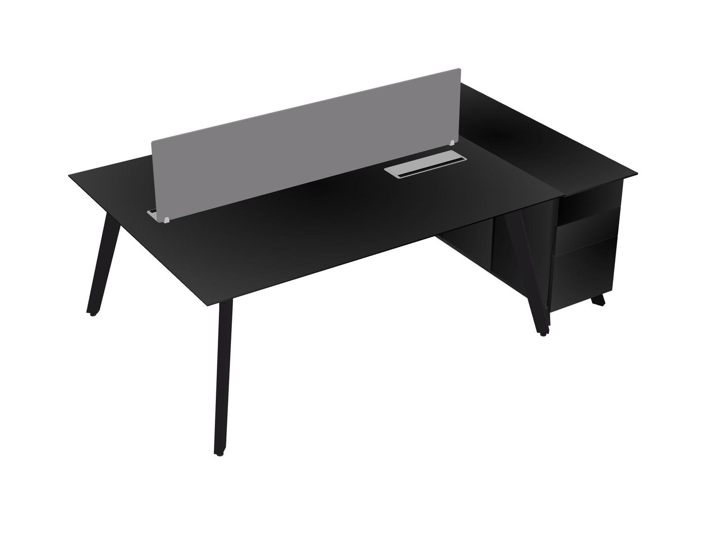 Black Modern Rectangular Shared Office Desk + Storage Cabinet