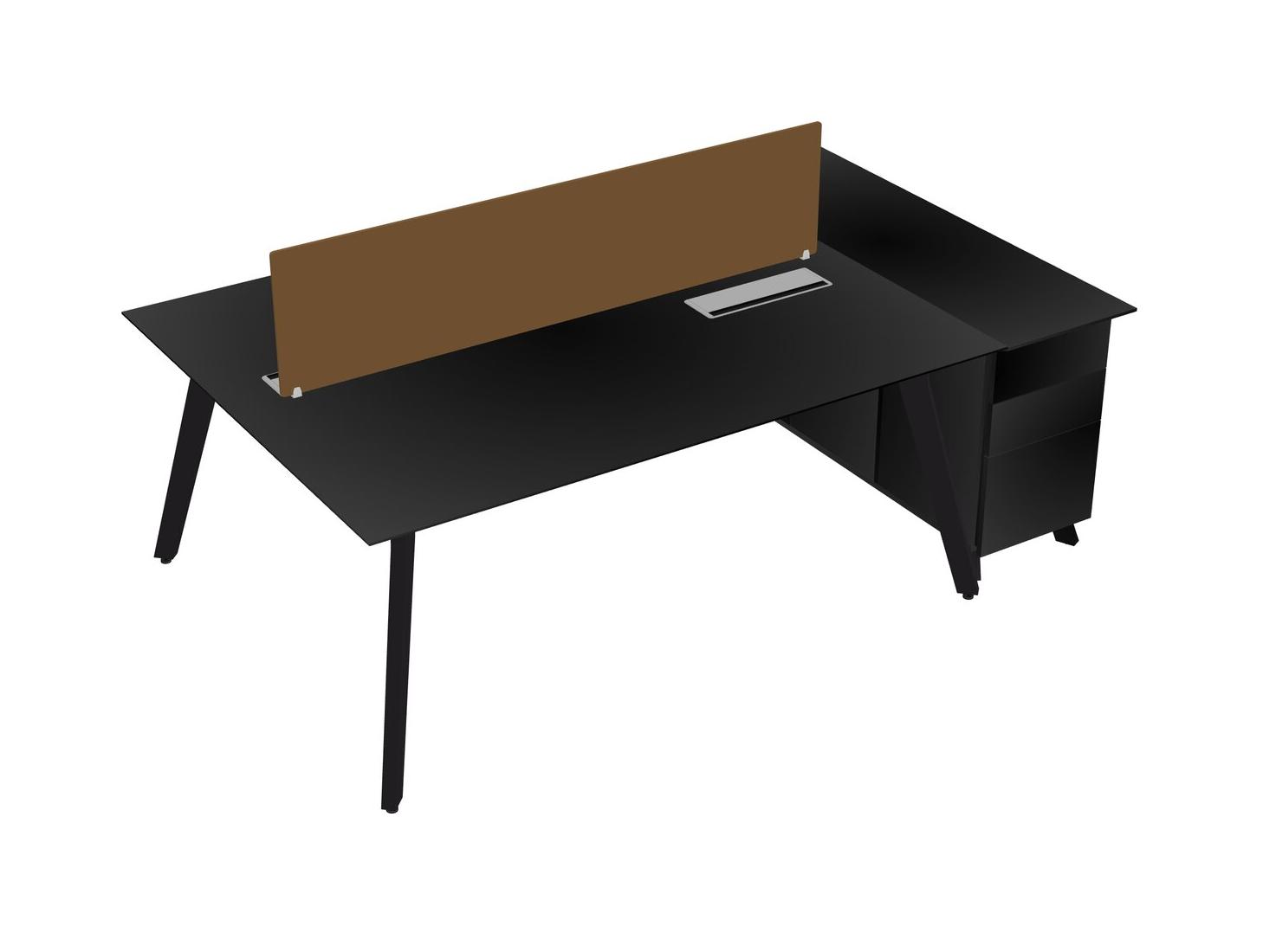 Black Modern Rectangular Shared Office Desk + Storage Cabinet