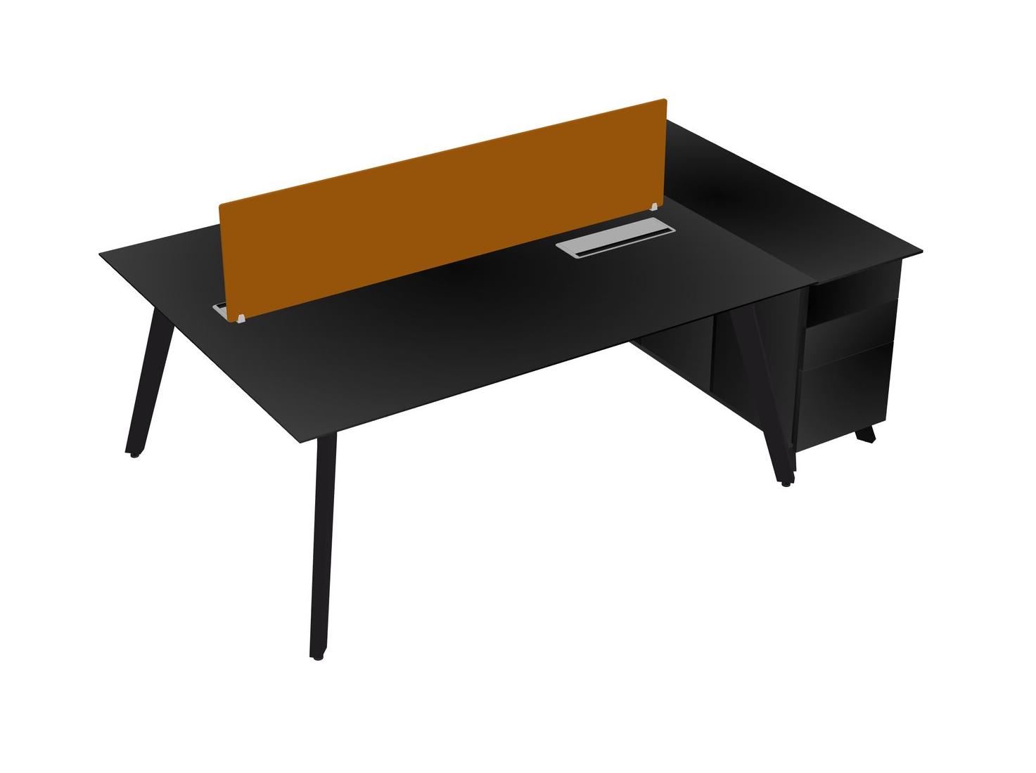 Black Modern Rectangular Shared Office Desk + Storage Cabinet