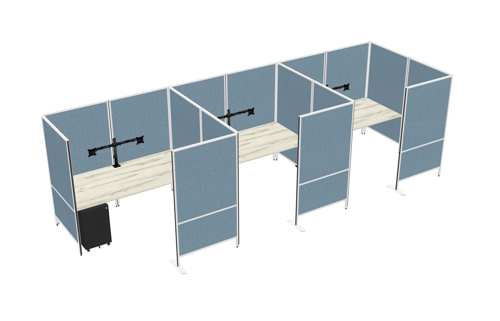 Heinne Holz Flexible Panel System With Privacy For 3 + Metal Mobile Drawers + Monitor Arm (double Arms)