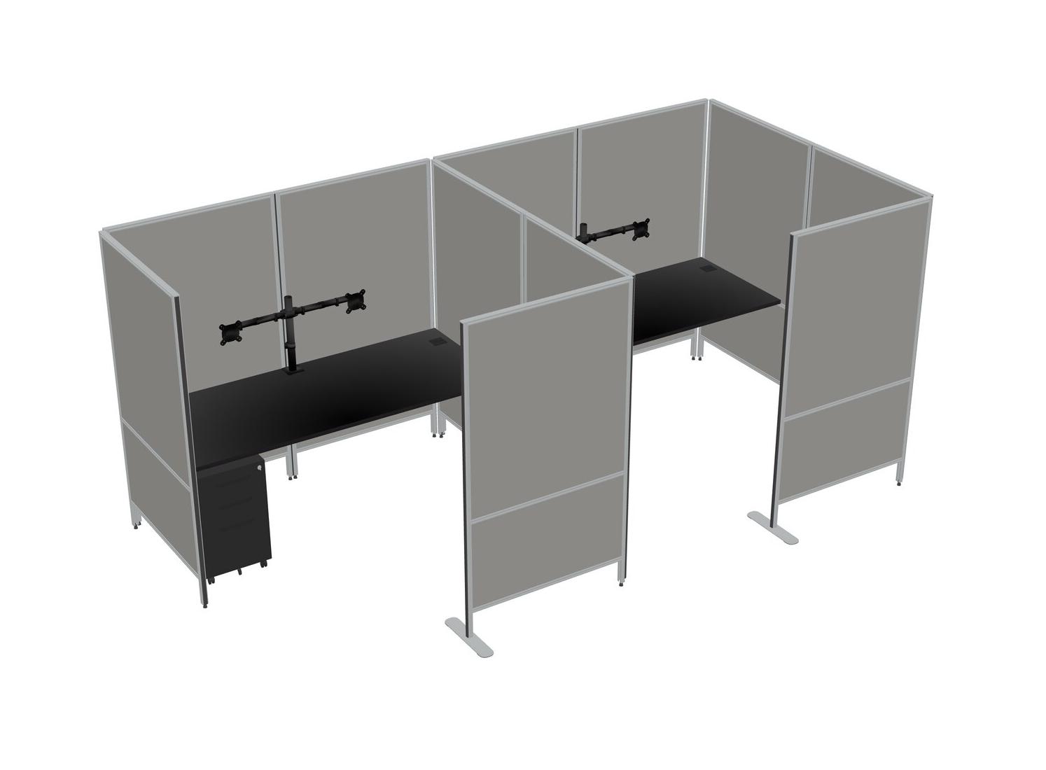Black Flexible Panel System With Privacy For 2 + Metal Mobile Drawers + Monitor Arm (double Arms)