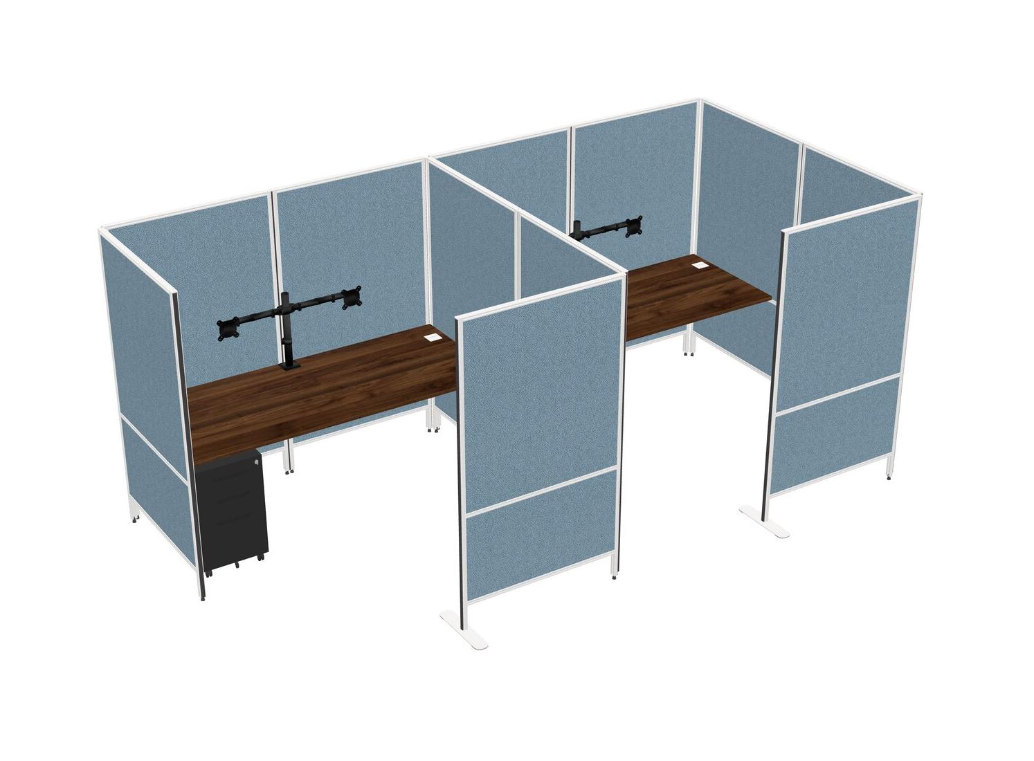 Columbia Walnut Flexible Panel System With Privacy For 2 + Metal Mobile Drawers + Monitor Arm (double Arms)