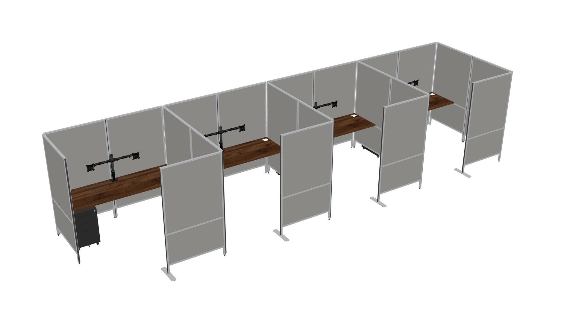 Columbia Walnut Flexible Panel System With Privacy For 4 + Metal Mobile Drawers + Monitor Arm (double Arms)