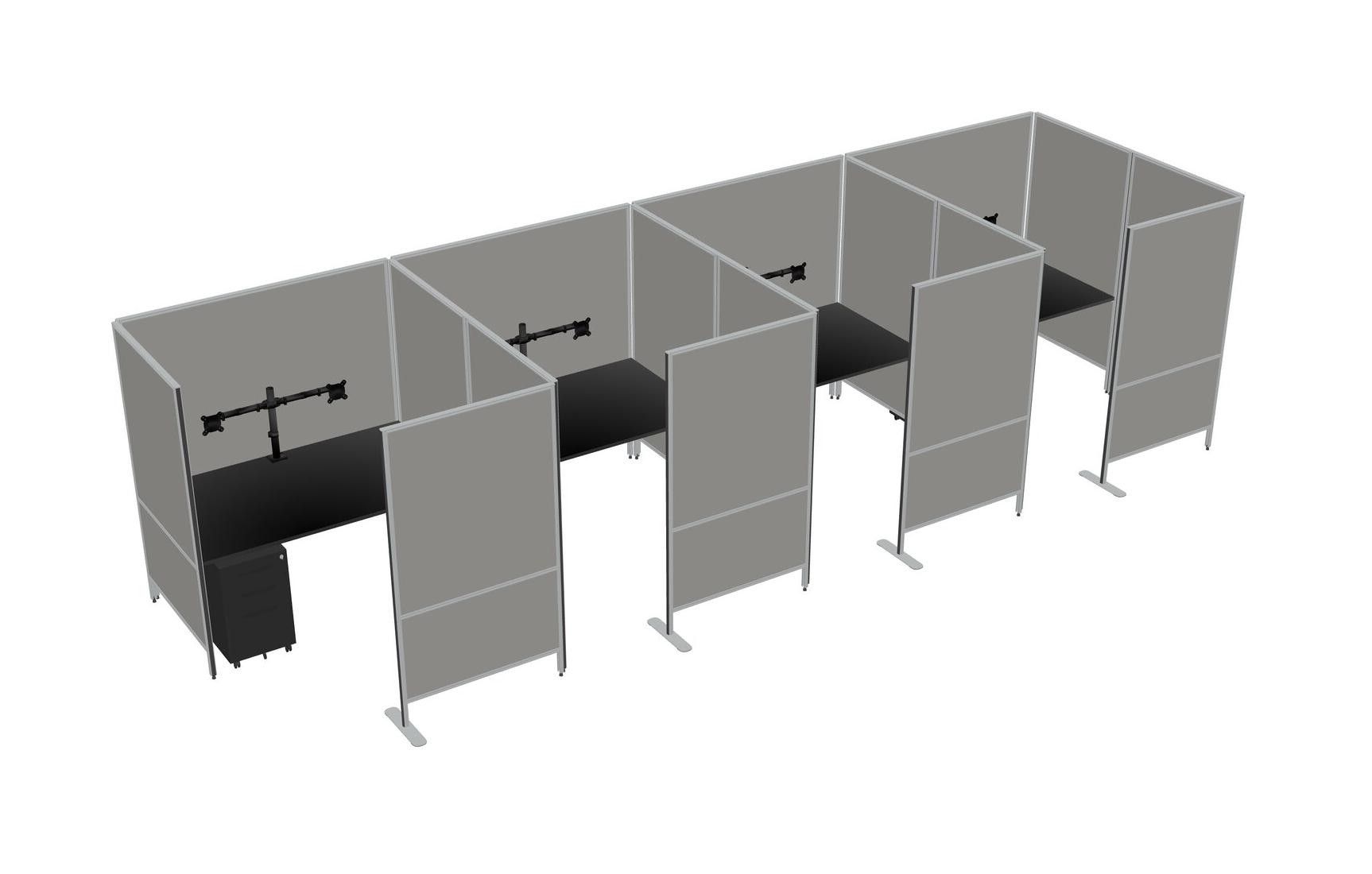 Black Flexible Panel System With Privacy For 4 + Metal Mobile Drawers + Monitor Arm (double Arms)