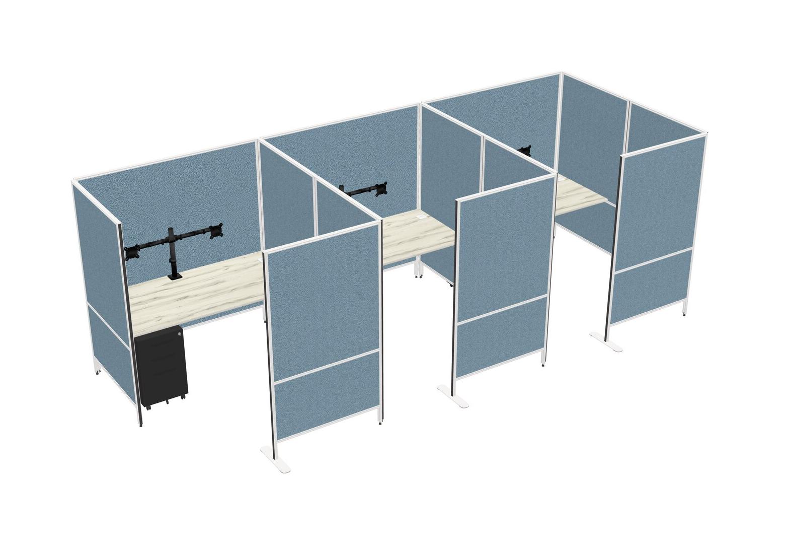Heinne Holz Flexible Panel System With Privacy For 3 + Metal Mobile Drawers + Monitor Arm (double Arms)