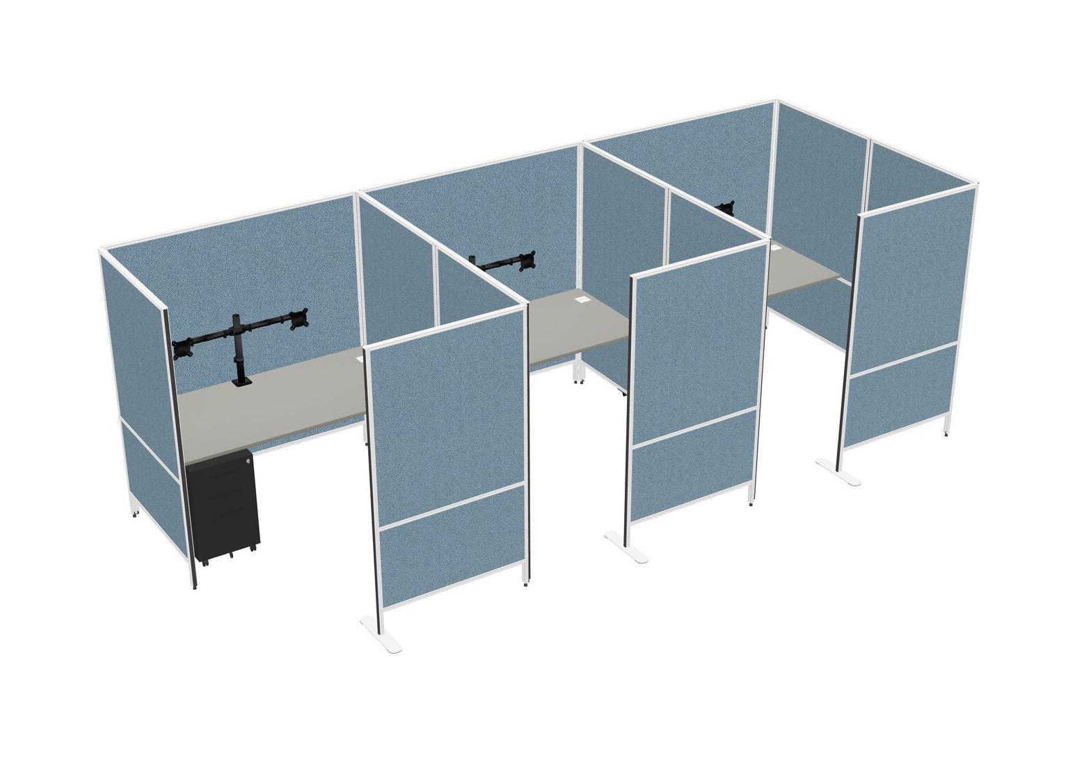 Grey Shadows Flexible Panel System With Privacy For 3 + Metal Mobile Drawers + Monitor Arm (double Arms)