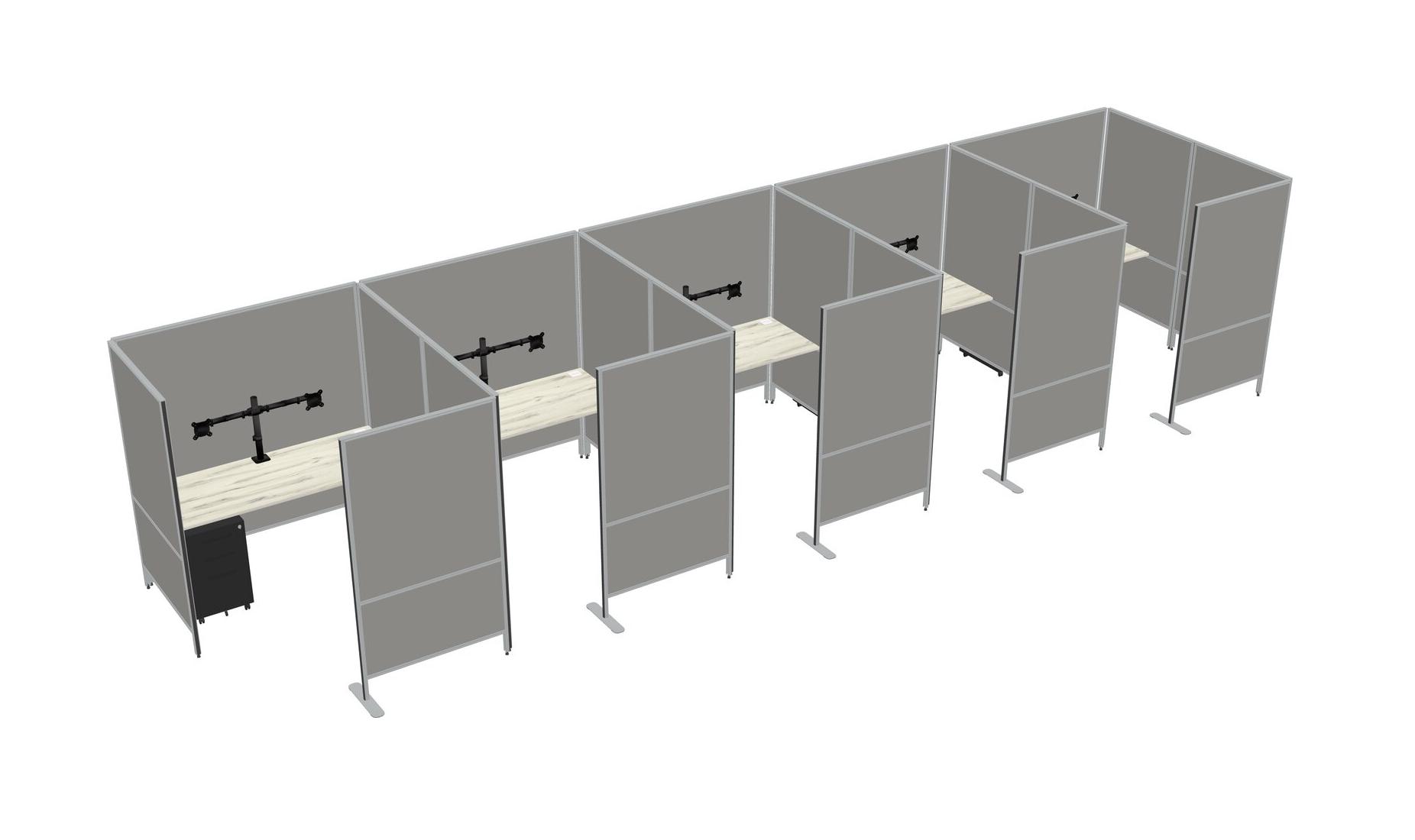 Heinne Holz Flexible Panel System With Privacy For 5 + Metal Mobile Drawers + Monitor Arm (double Arms)