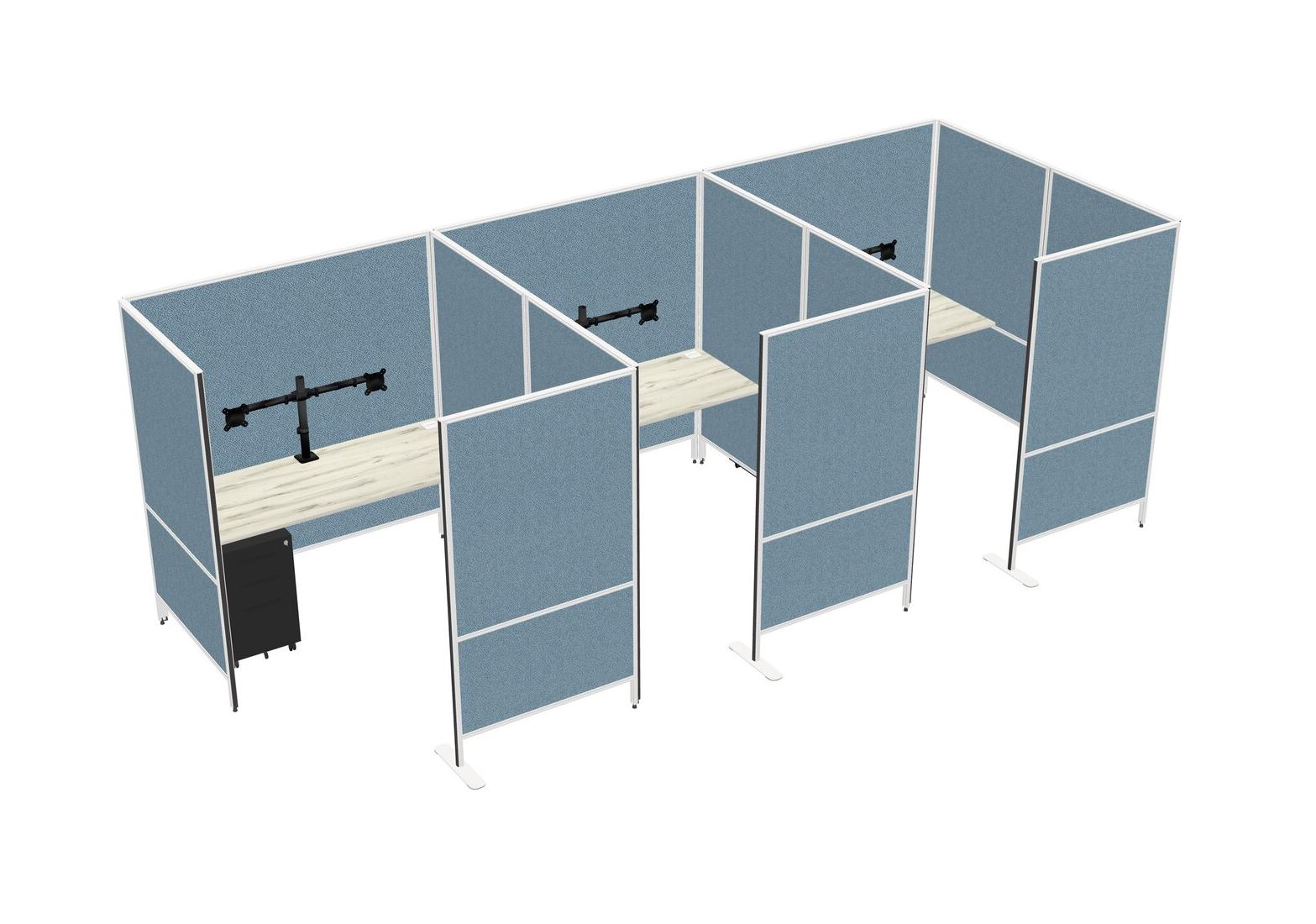 Heinne Holz Flexible Panel System With Privacy For 3 + Metal Mobile Drawers + Monitor Arm (double Arms)