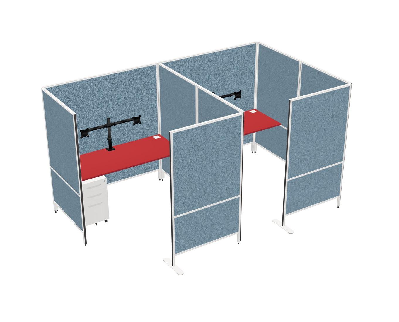 Prism Red Flexible Panel System With Privacy For 2 + Metal Mobile Drawers + Monitor Arm (double Arms)