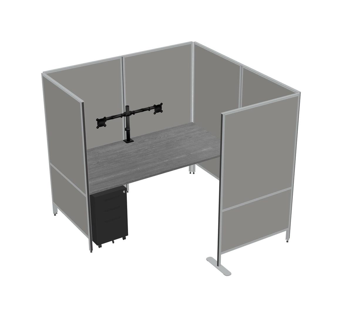 Grey Flexible Panel System With Privacy For 1 + Metal Mobile Drawers + Monitor Arm (double Arms)