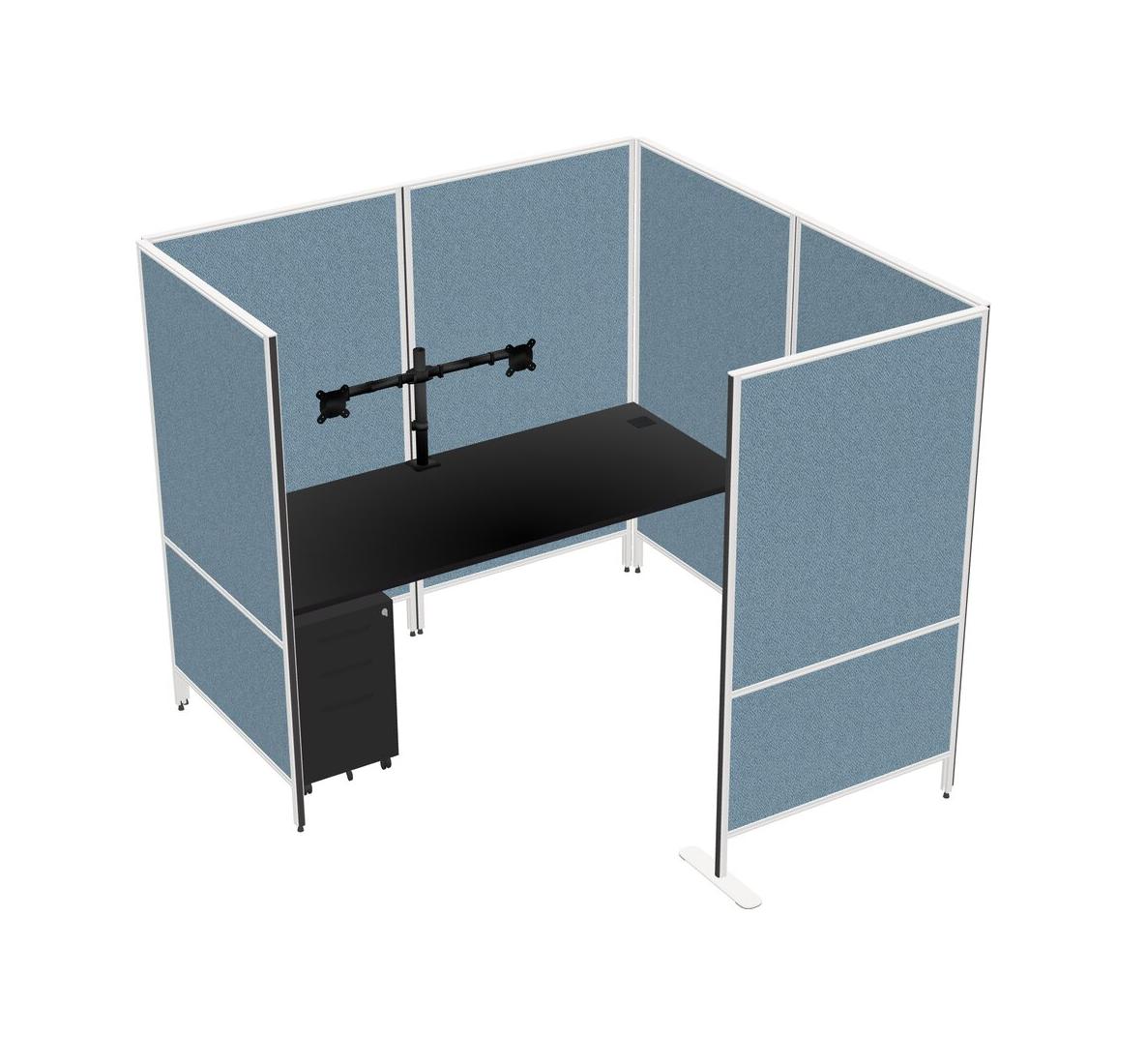 Black Flexible Panel System With Privacy For 1 + Metal Mobile Drawers + Monitor Arm (double Arms)