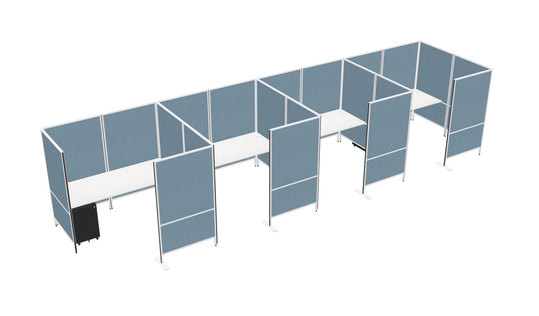White Flexible Panel System With Privacy For 4 + Metal Mobile Drawers