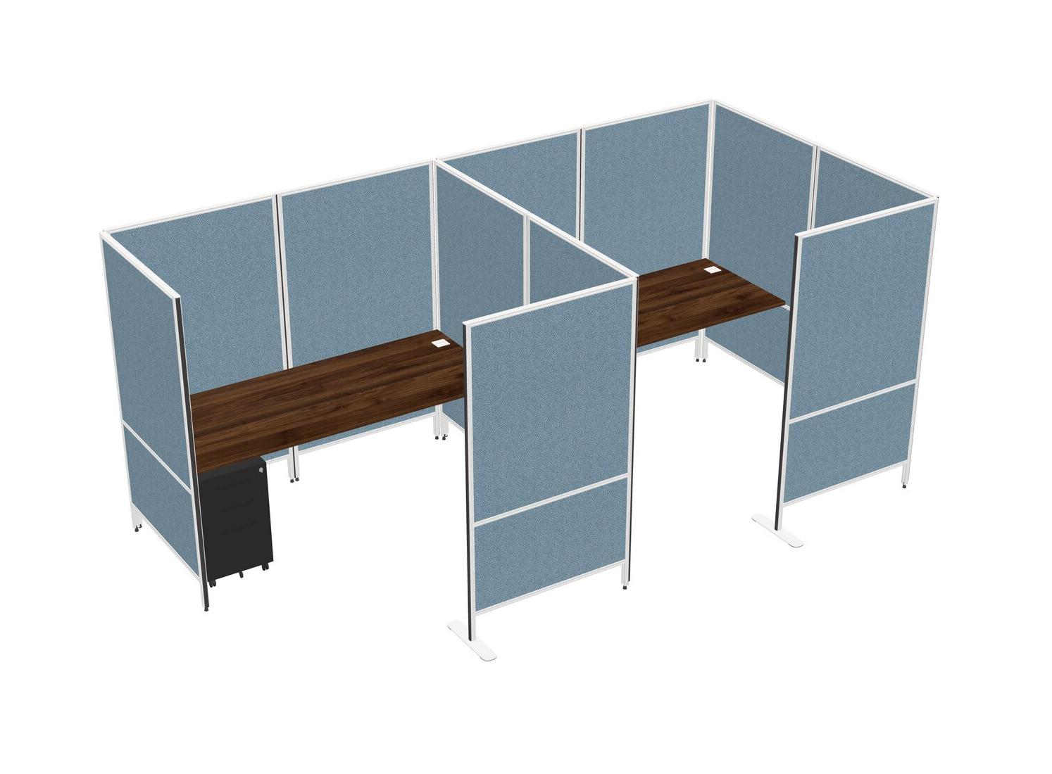Columbia Walnut Flexible Panel System With Privacy For 2 + Metal Mobile Drawers