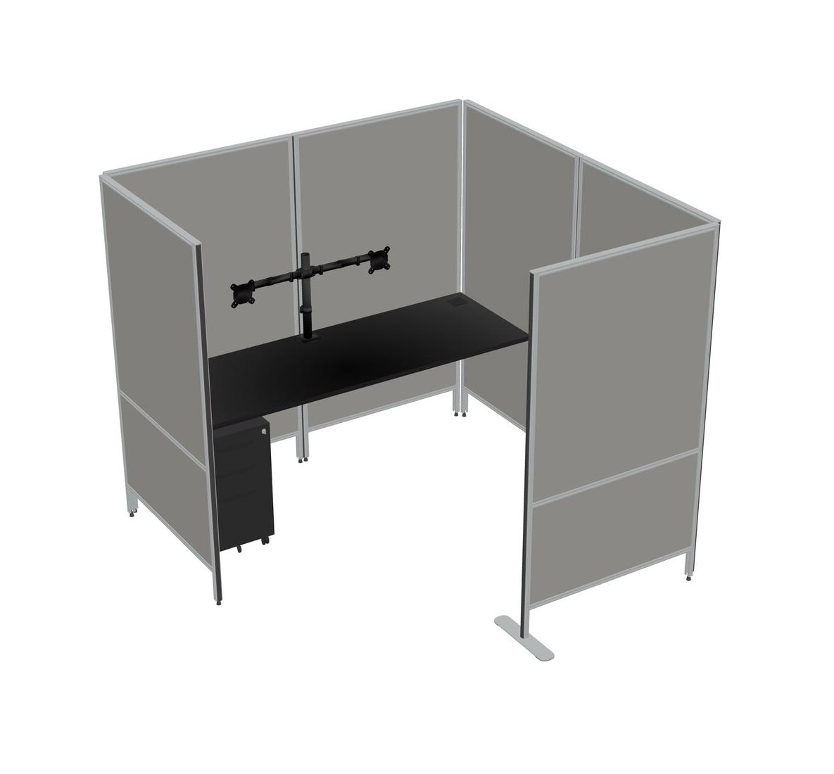 Black Flexible Panel System With Privacy For 1 + Metal Mobile Drawers + Monitor Arm (double Arms)