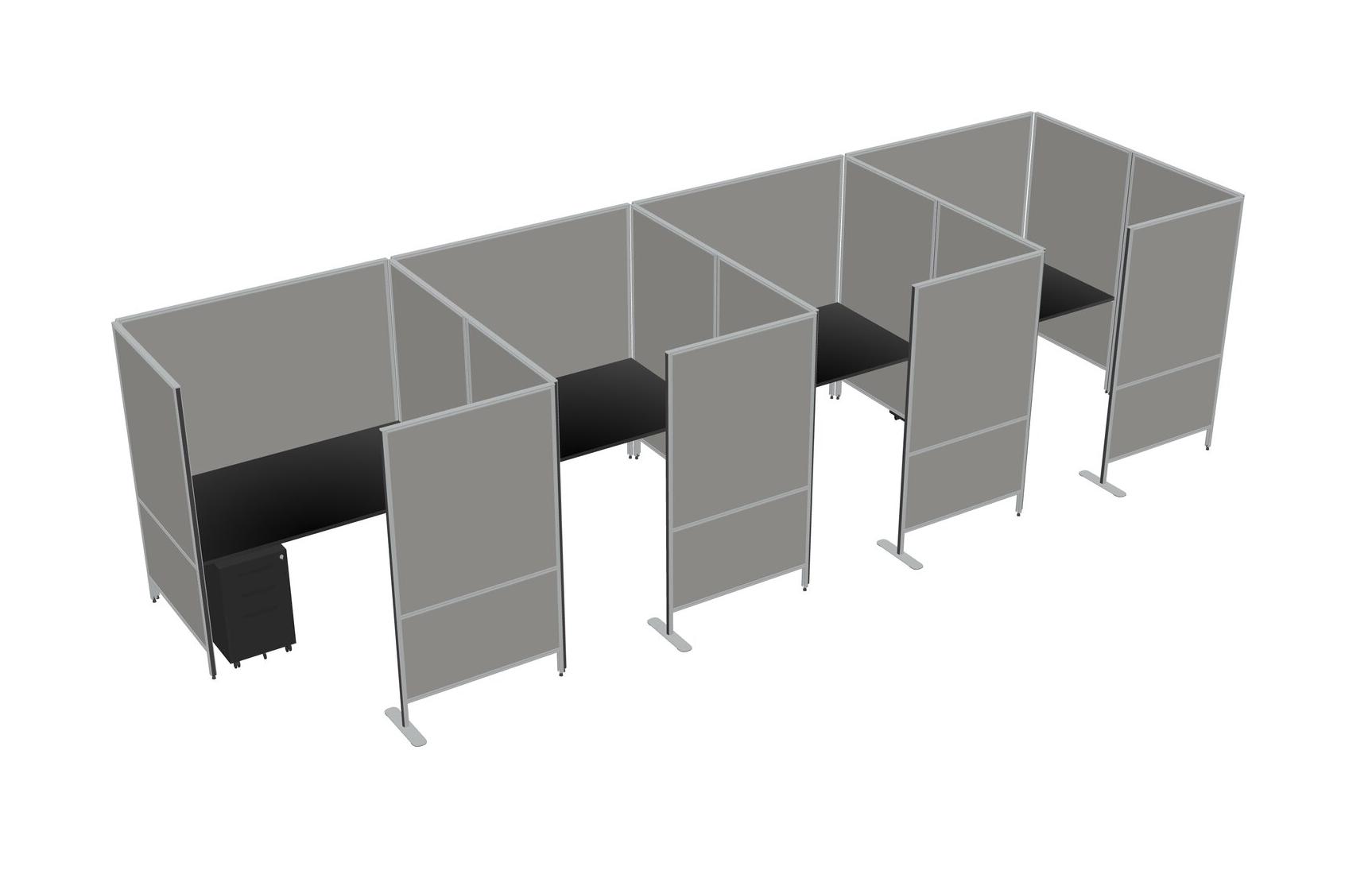 Black Flexible Panel System With Privacy For 4 + Metal Mobile Drawers