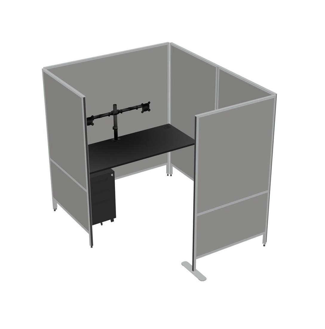 Black Flexible Panel System With Privacy For 1 + Metal Mobile Drawers + Monitor Arm (double Arms)