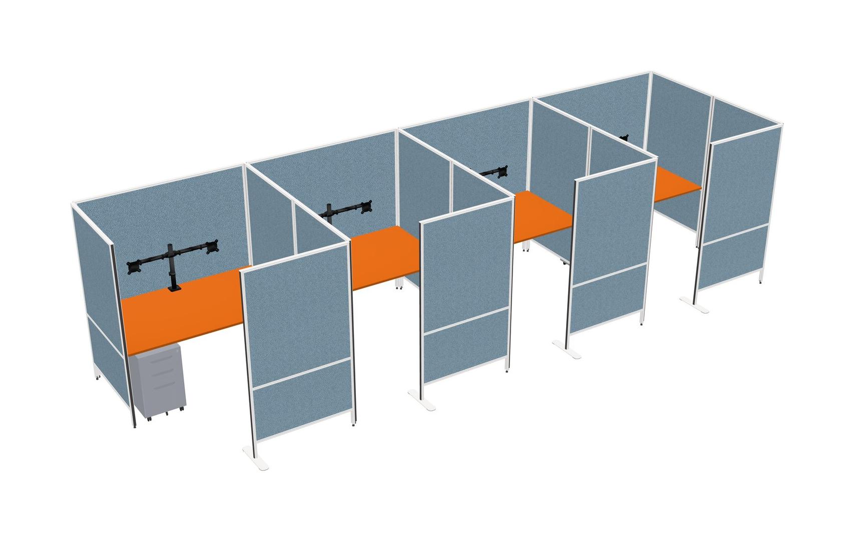 Orange Flexible Panel System With Privacy For 4 + Metal Mobile Drawers + Monitor Arm (double Arms)