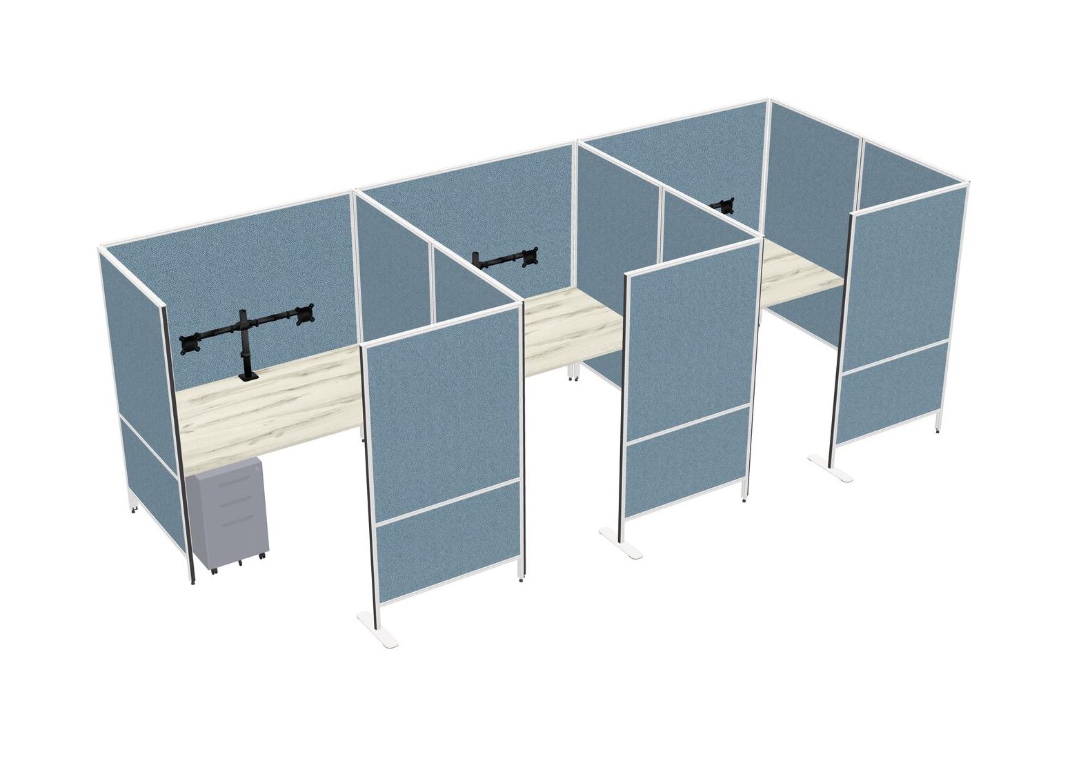 Heinne Holz Flexible Panel System With Privacy For 3 + Metal Mobile Drawers + Monitor Arm (double Arms)