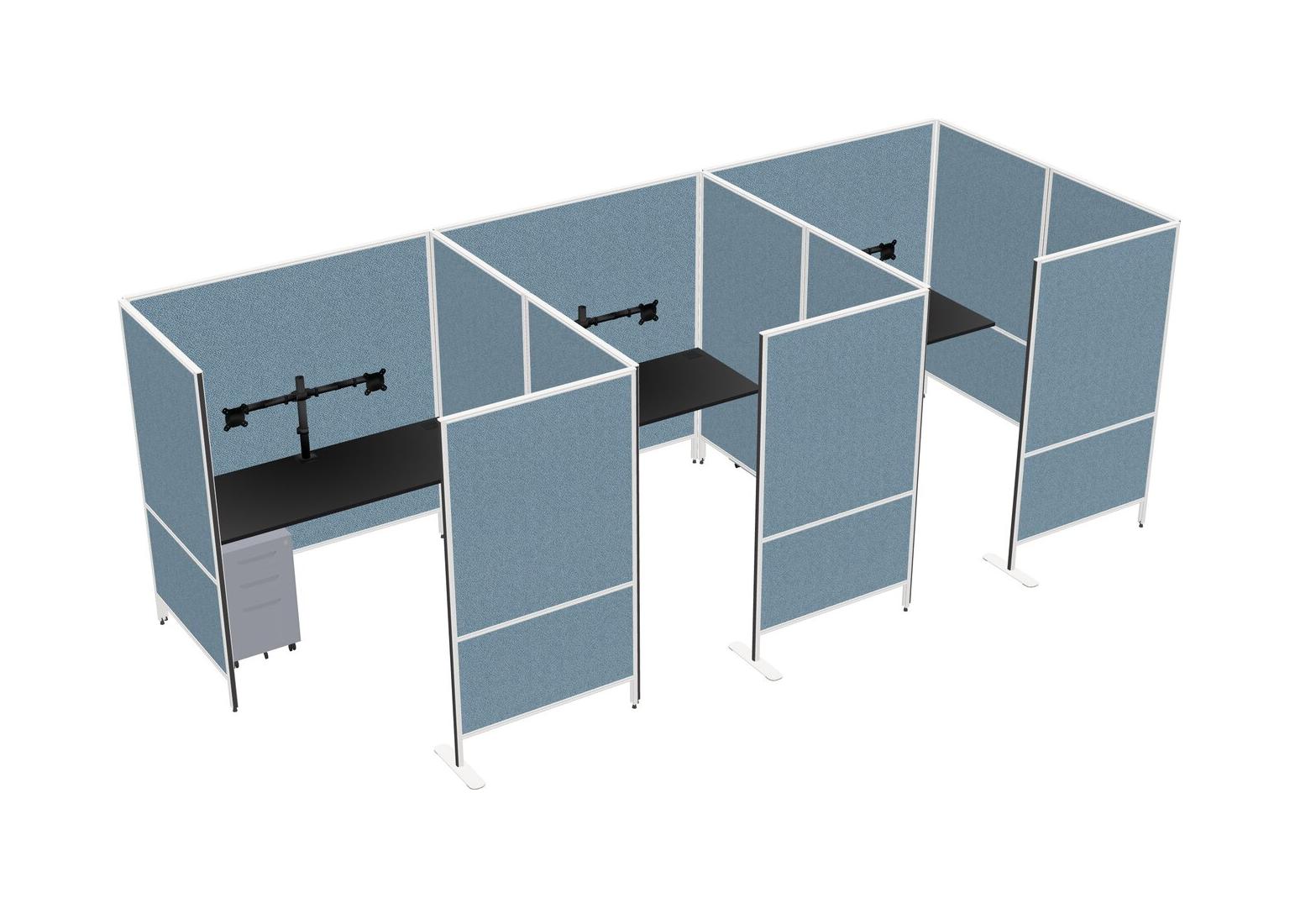 Black Flexible Panel System With Privacy For 3 + Metal Mobile Drawers + Monitor Arm (double Arms)