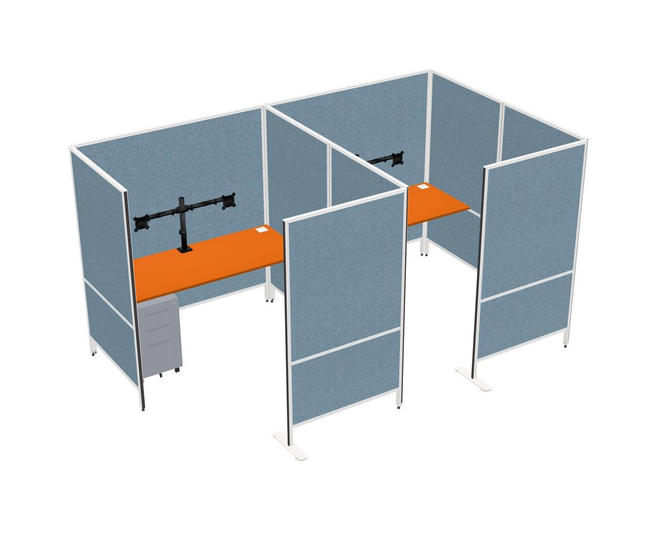 Orange Flexible Panel System With Privacy For 2 + Metal Mobile Drawers + Monitor Arm (double Arms)