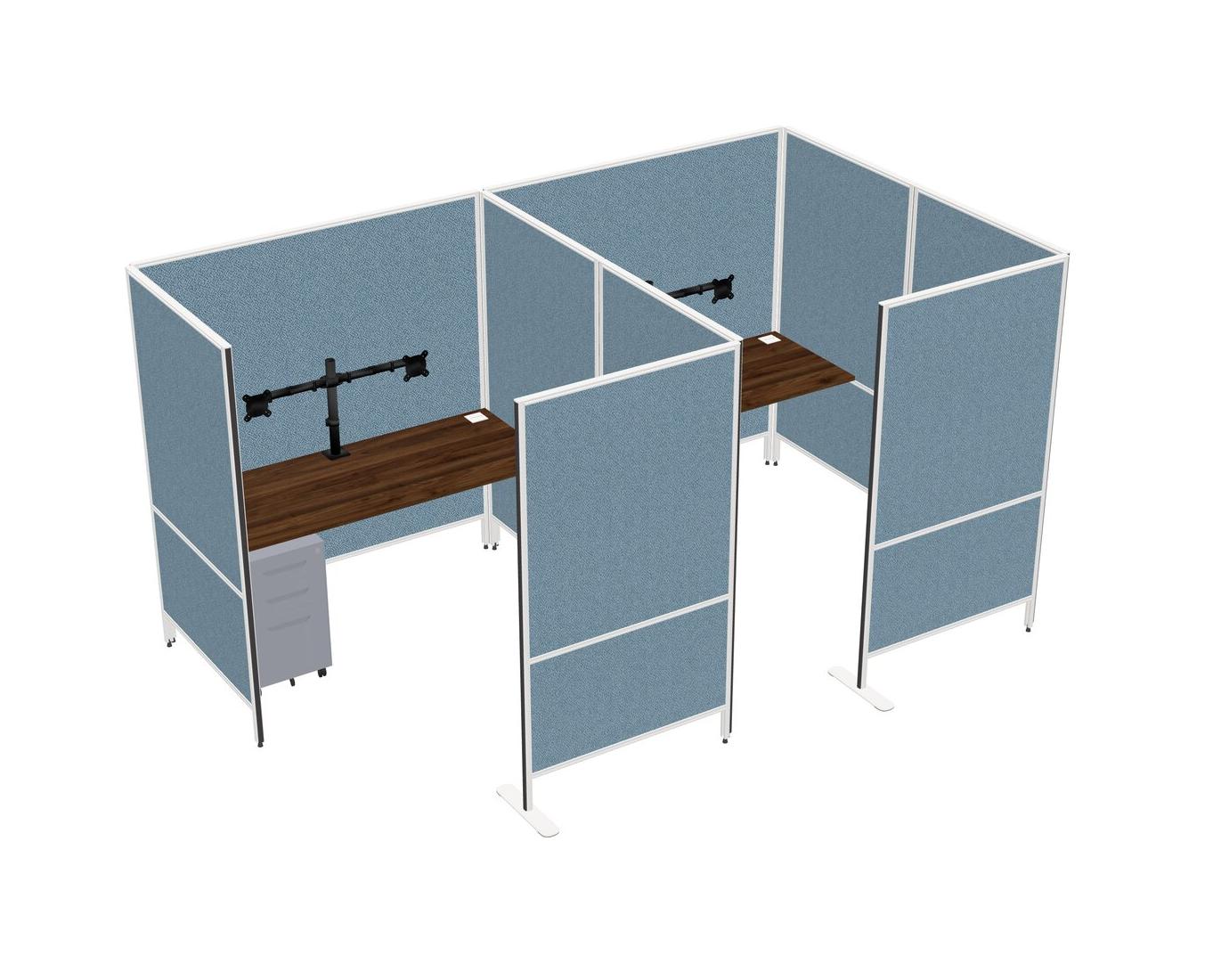 Columbia Walnut Flexible Panel System With Privacy For 2 + Metal Mobile Drawers + Monitor Arm (double Arms)