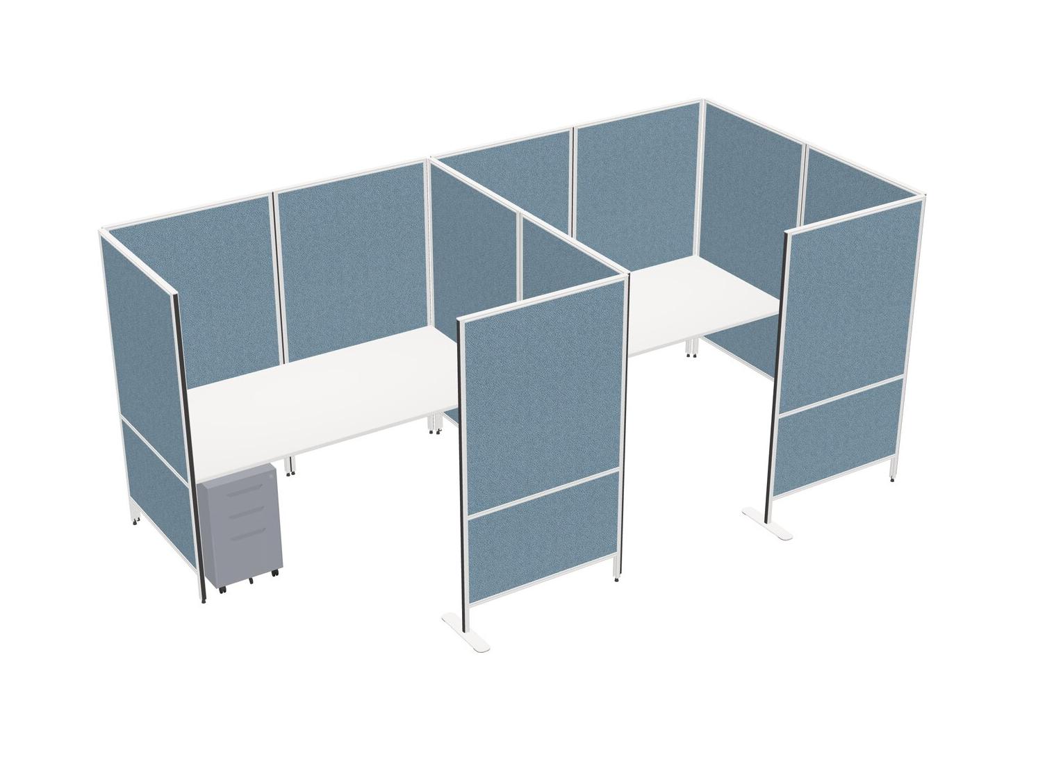 White Flexible Panel System With Privacy For 2 + Metal Mobile Drawers