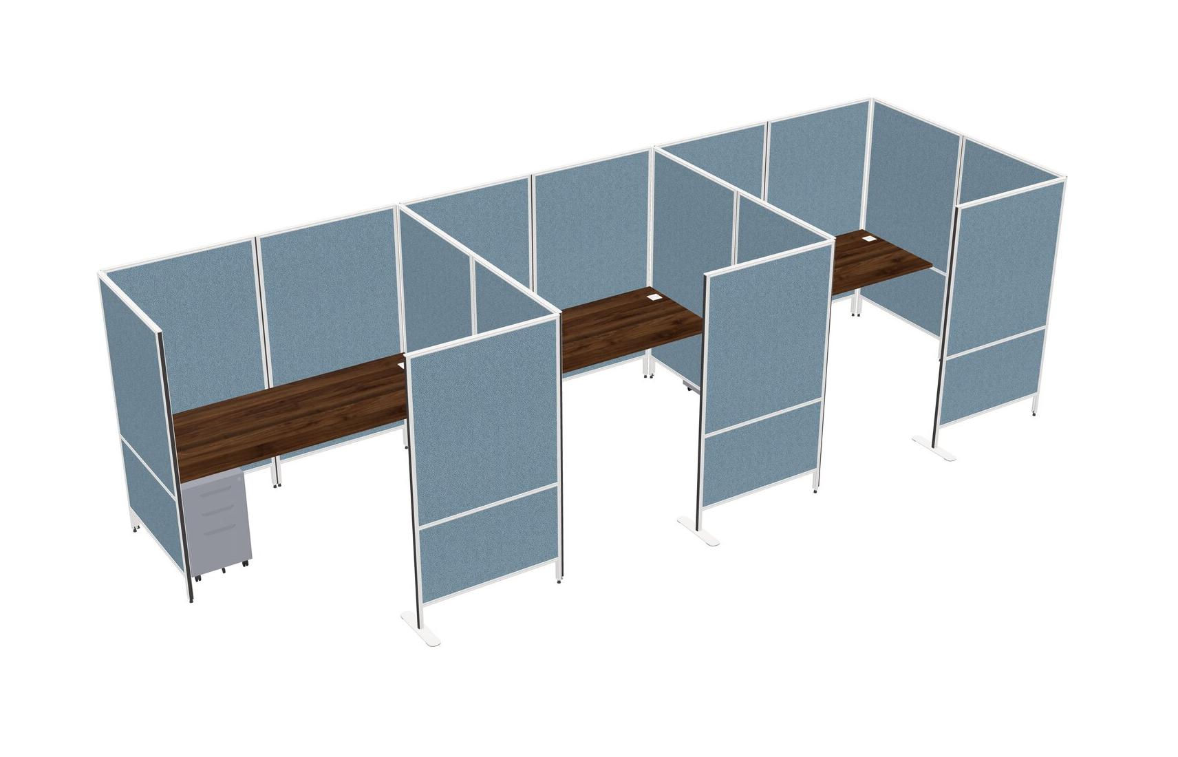 Columbia Walnut Flexible Panel System With Privacy For 3 + Metal Mobile Drawers