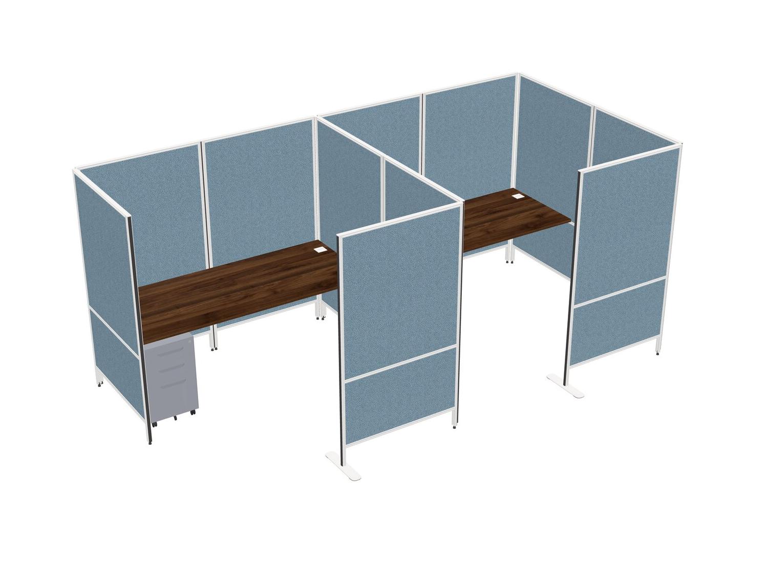 Columbia Walnut Flexible Panel System With Privacy For 2 + Metal Mobile Drawers