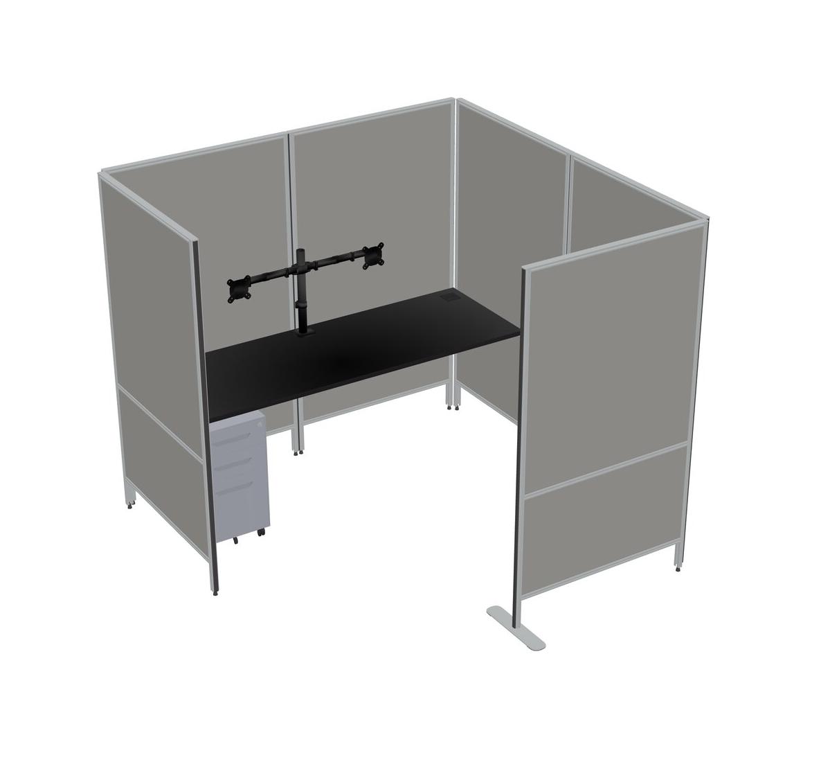 Black Flexible Panel System With Privacy For 1 + Metal Mobile Drawers + Monitor Arm (double Arms)
