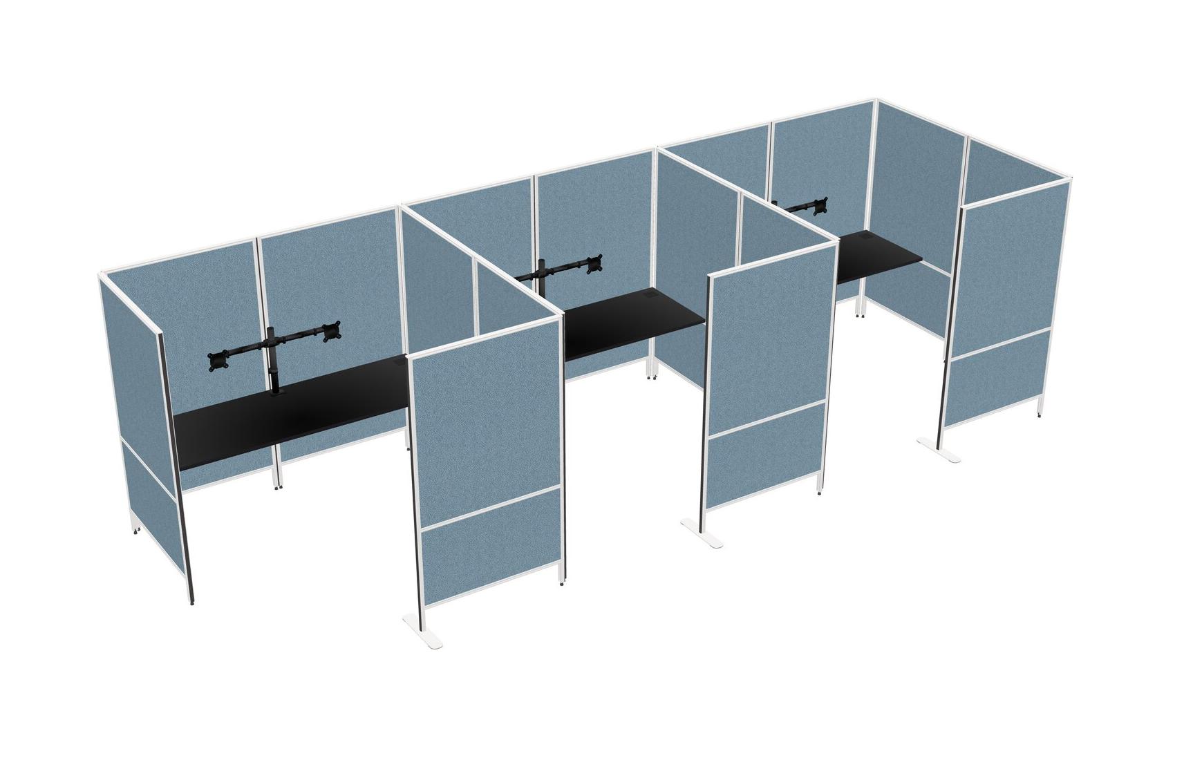 Black Flexible Panel System With Privacy For 3 + Monitor Arm (double Arms)