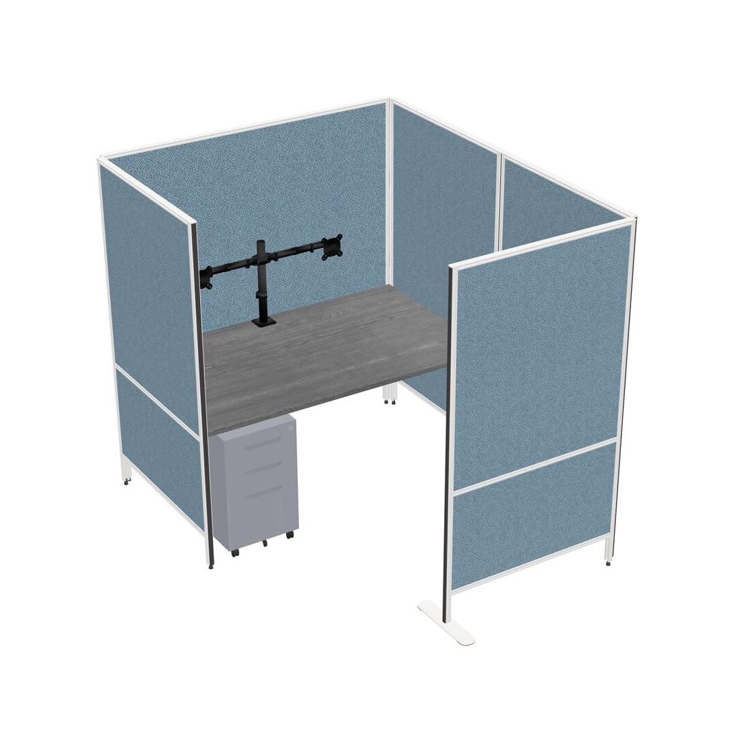 Grey Flexible Panel System With Privacy For 1 + Metal Mobile Drawers + Monitor Arm (double Arms)