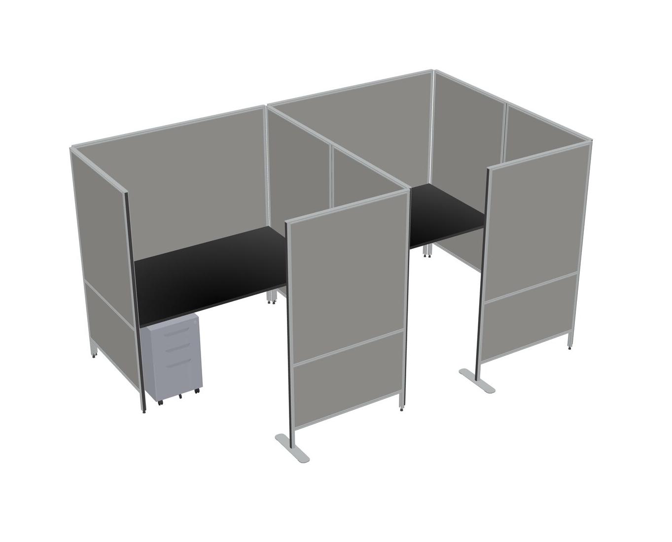 Black Flexible Panel System With Privacy For 2 + Metal Mobile Drawers