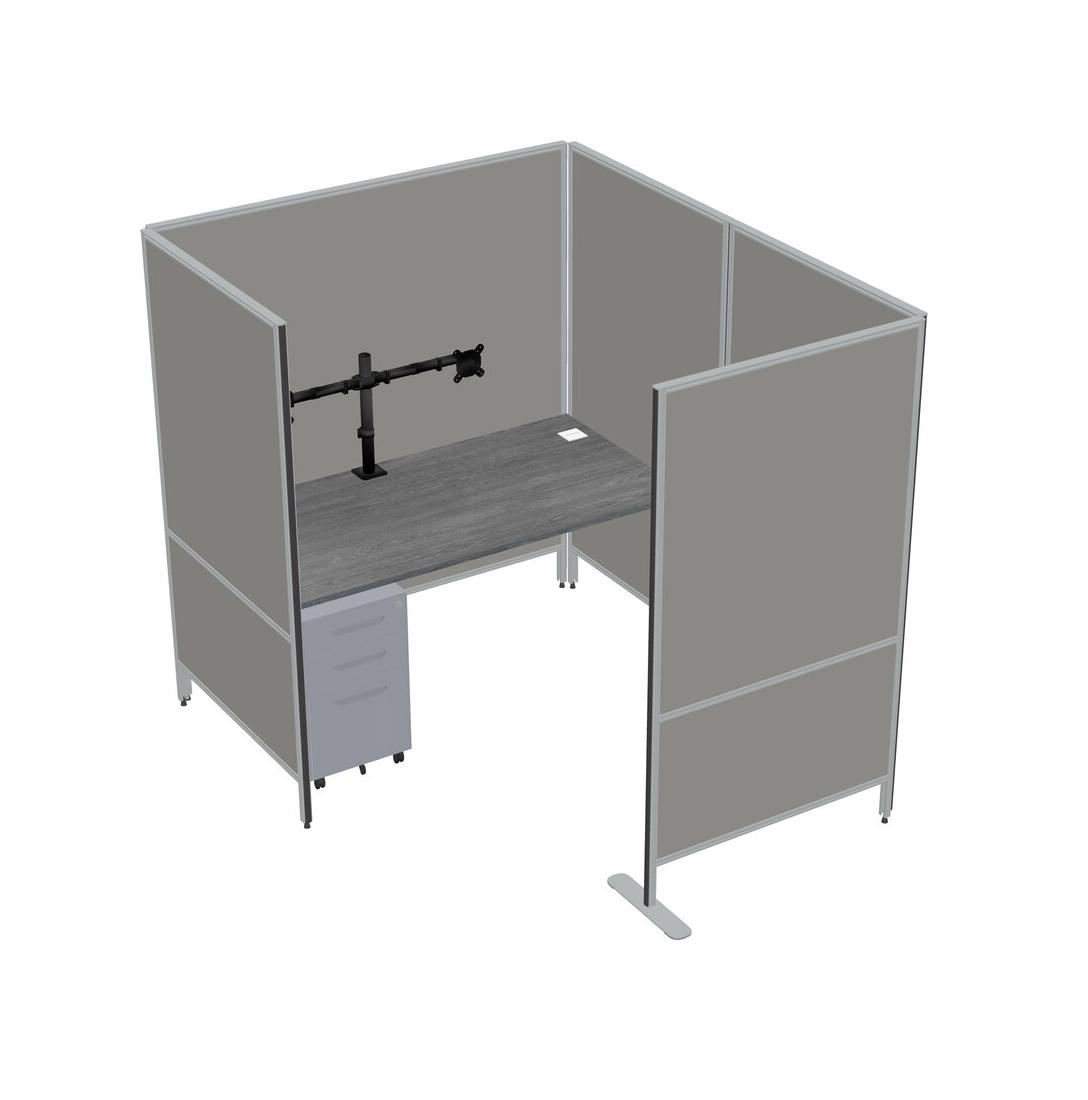 Grey Flexible Panel System With Privacy For 1 + Metal Mobile Drawers + Monitor Arm (double Arms)