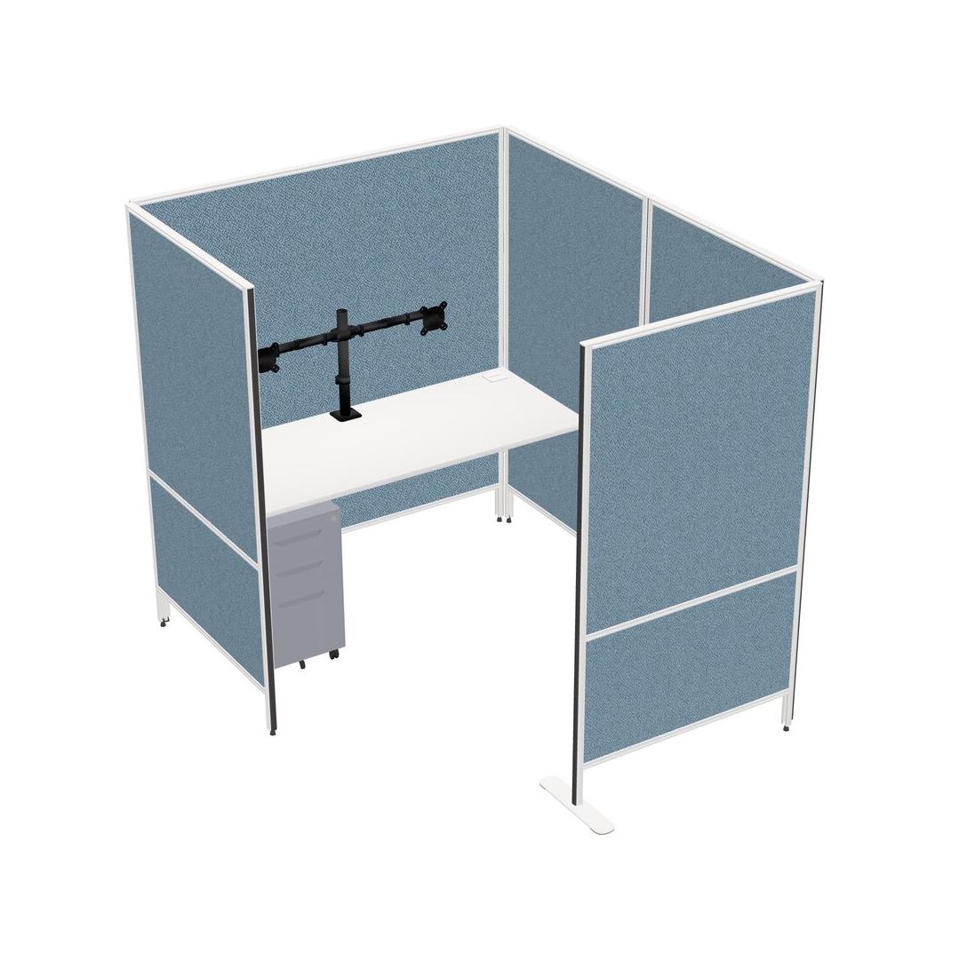 White Flexible Panel System With Privacy For 1 + Metal Mobile Drawers + Monitor Arm (double Arms)