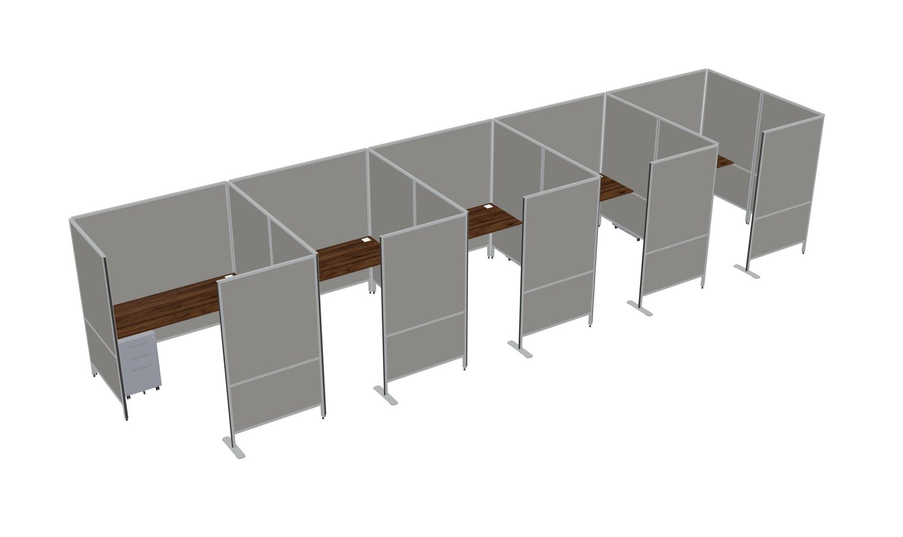 Columbia Walnut Flexible Panel System With Privacy For 5 + Metal Mobile Drawers