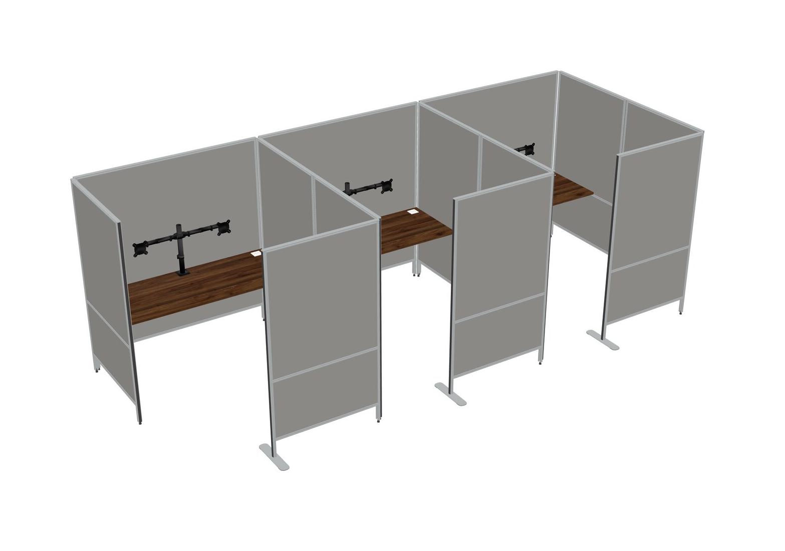Columbia Walnut Flexible Panel System With Privacy For 3 + Monitor Arm (double Arms)