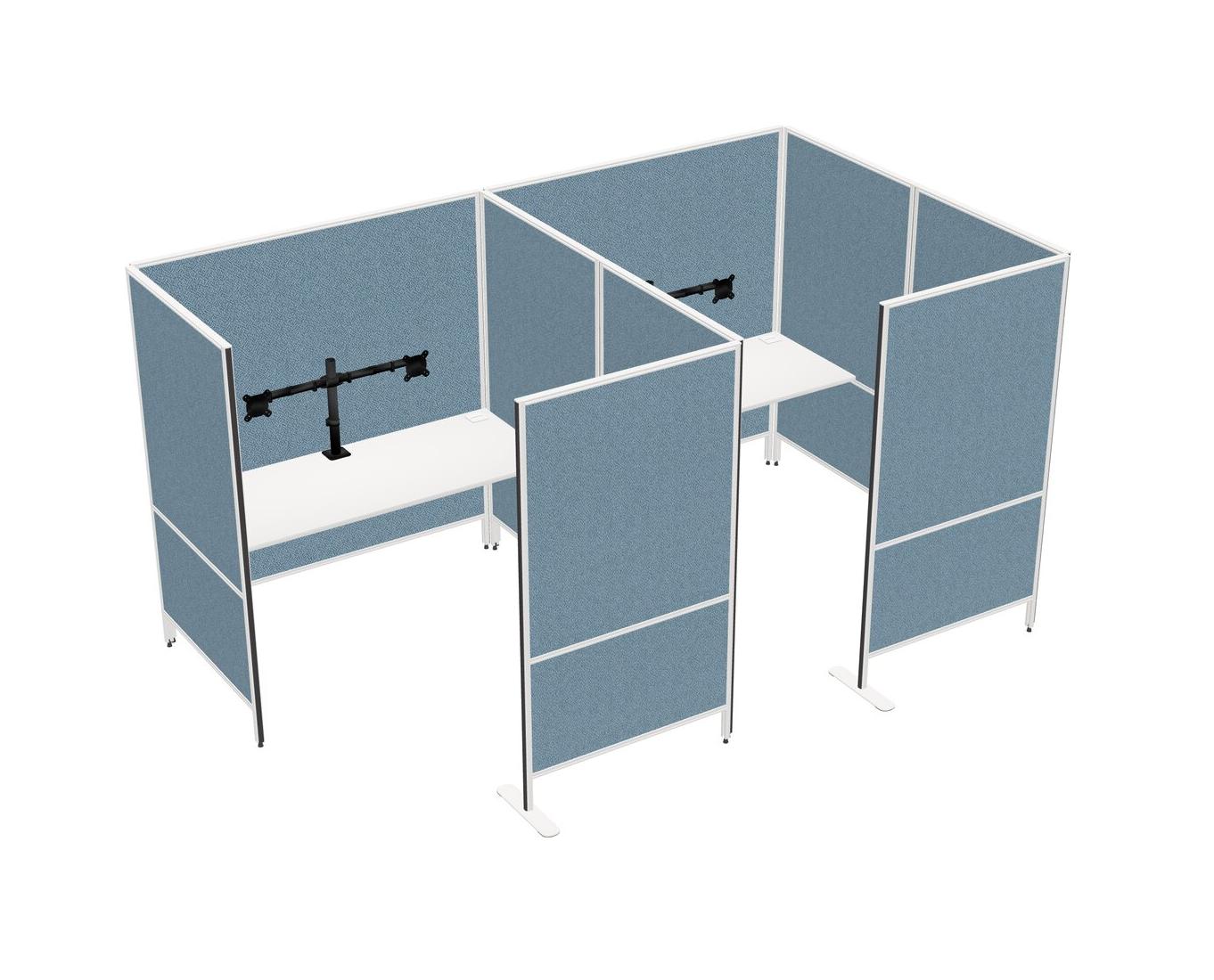 White Flexible Panel System With Privacy For 2 + Monitor Arm (double Arms)