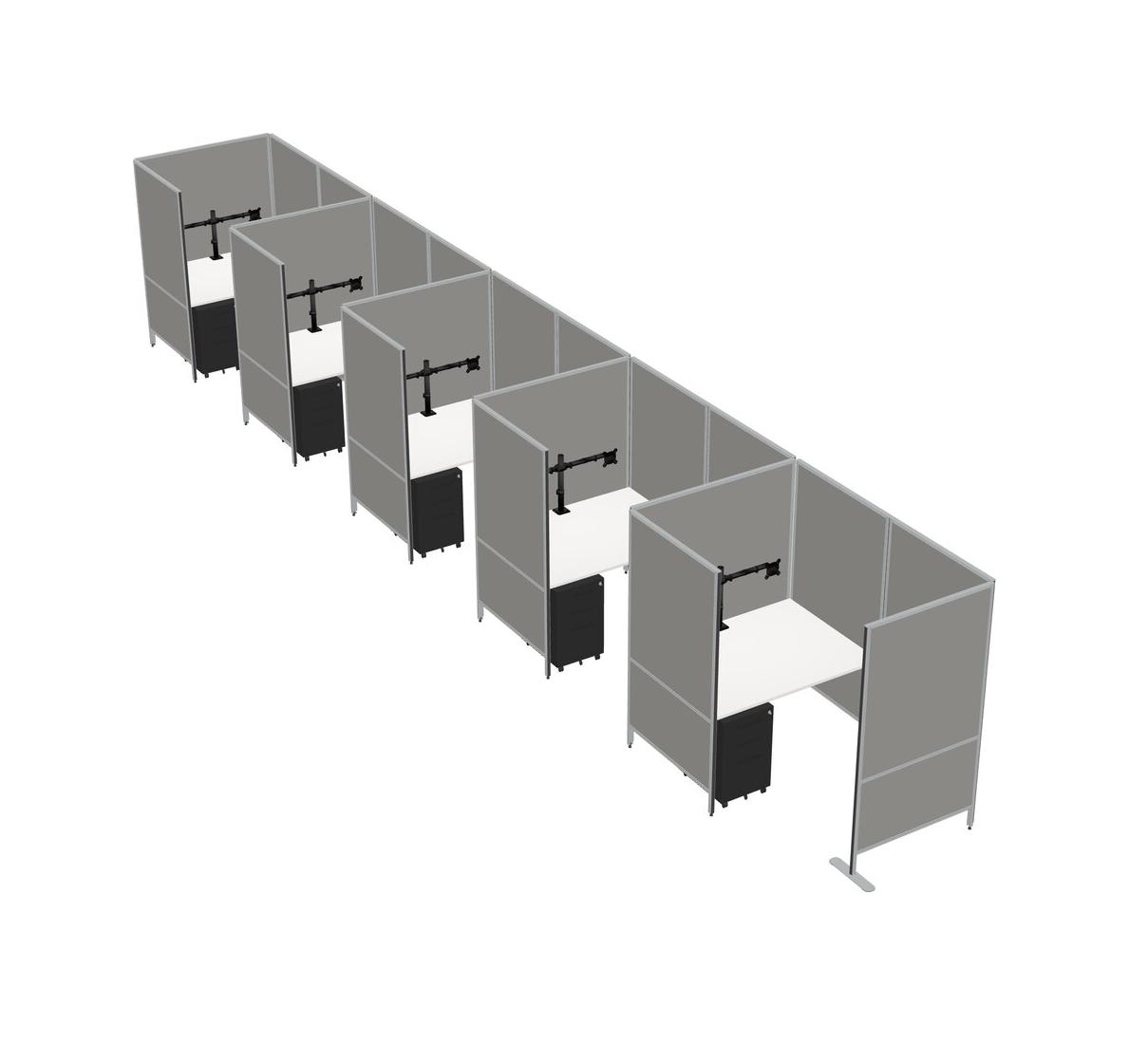 White Small Private Panel System + Panel System + Metal Mobile Drawers