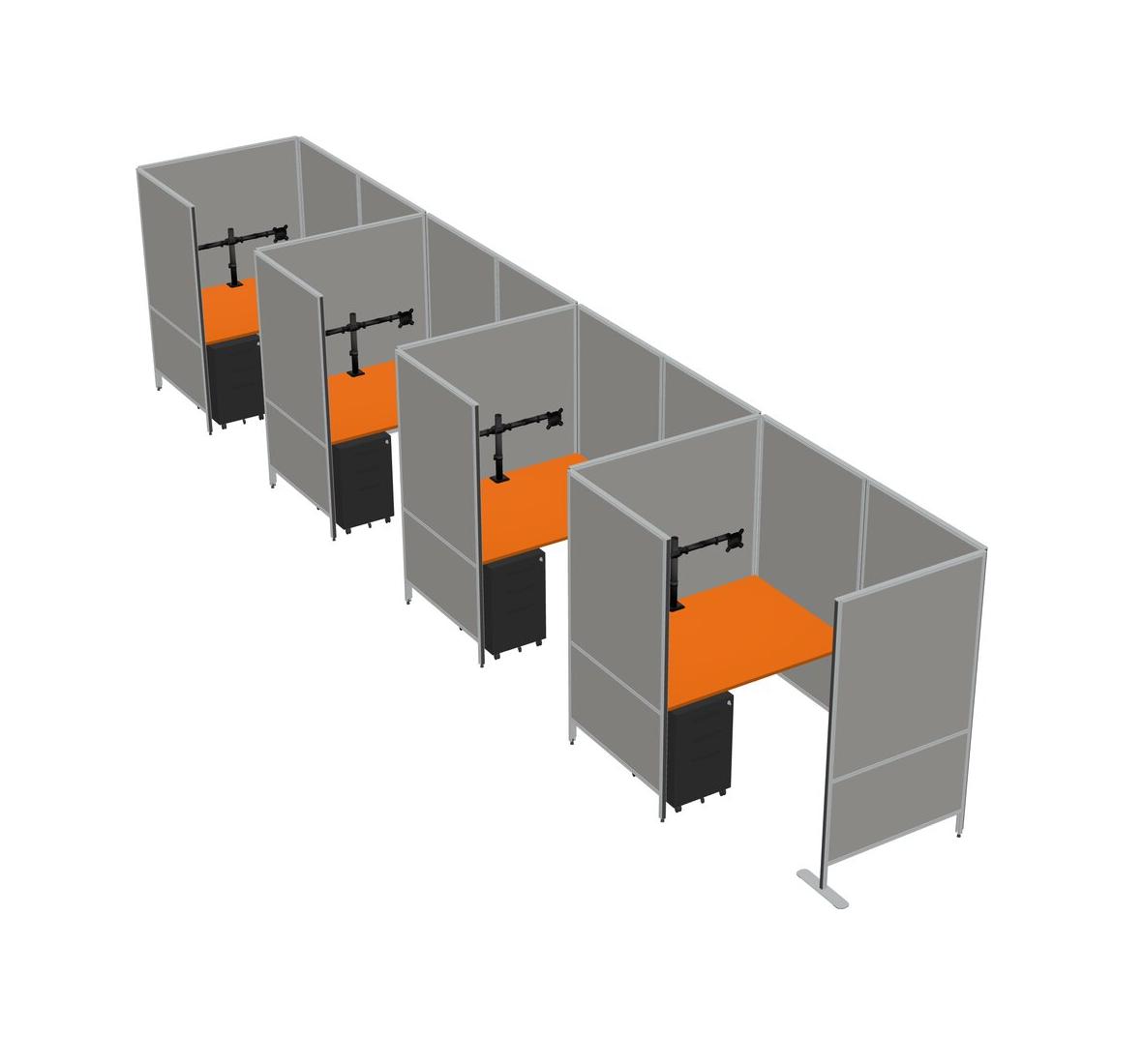 Orange Small Private Panel System + Panel System + Metal Mobile Drawers