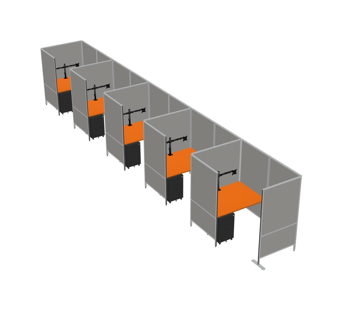 Orange Small Private Panel System + Panel System + Metal Mobile Drawers