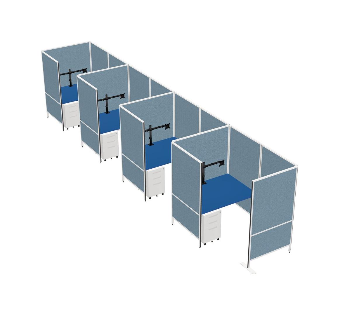 Prism Blue Small Private Panel System + Panel System + Metal Mobile Drawers