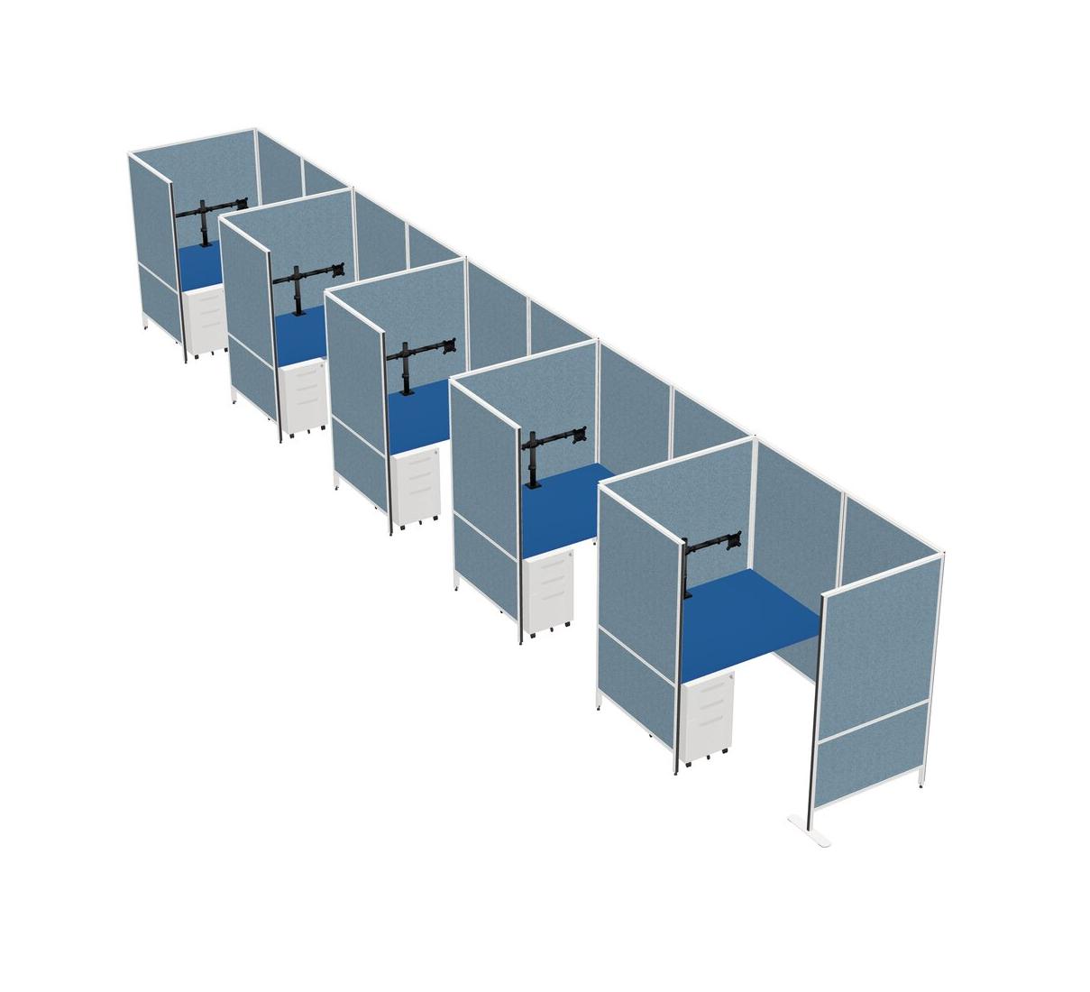 Prism Blue Small Private Panel System + Panel System + Metal Mobile Drawers