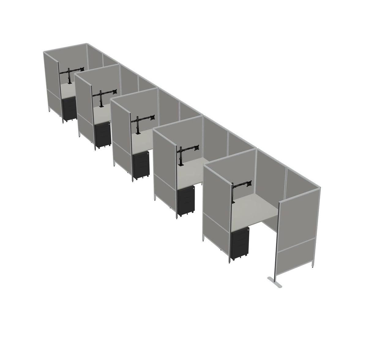 Grey Shadows Small Private Panel System + Panel System + Metal Mobile Drawers