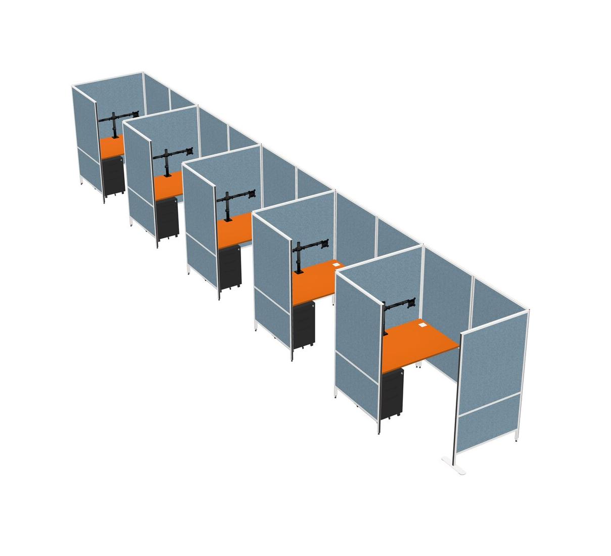 Orange Small Private Panel System + Panel System + Metal Mobile Drawers