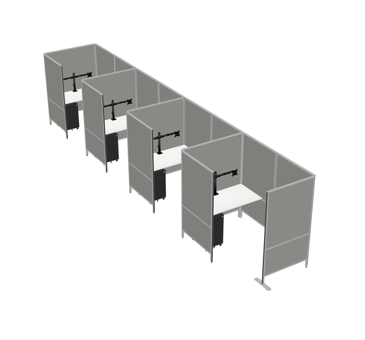 White Small Private Panel System + Panel System + Metal Mobile Drawers