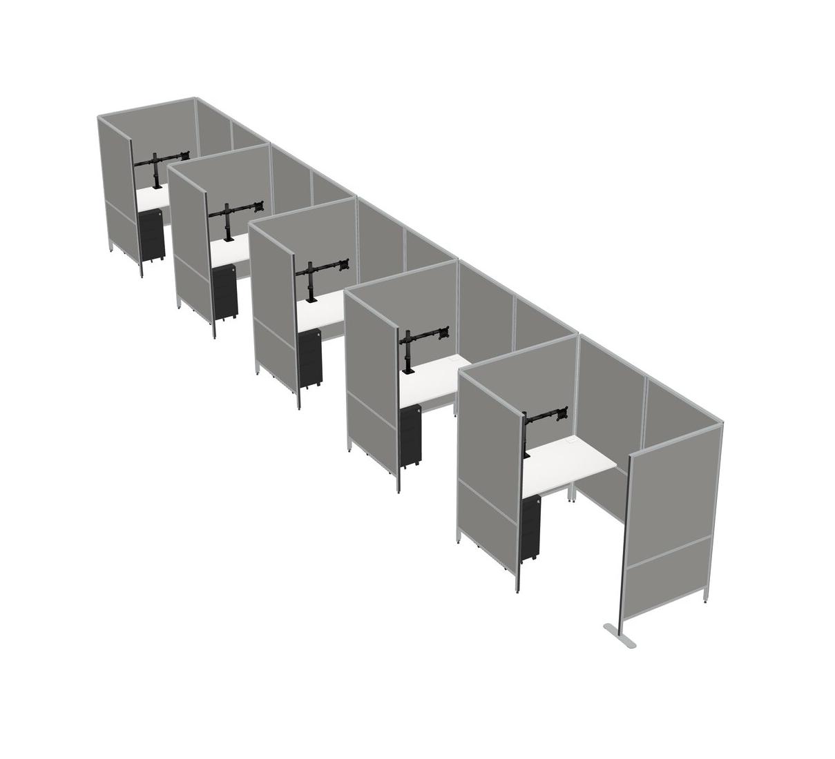 White Small Private Panel System + Panel System + Metal Mobile Drawers