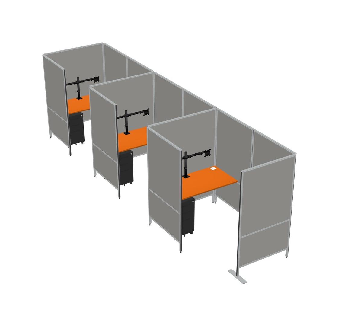 Orange Small Private Panel System + Panel System + Metal Mobile Drawers